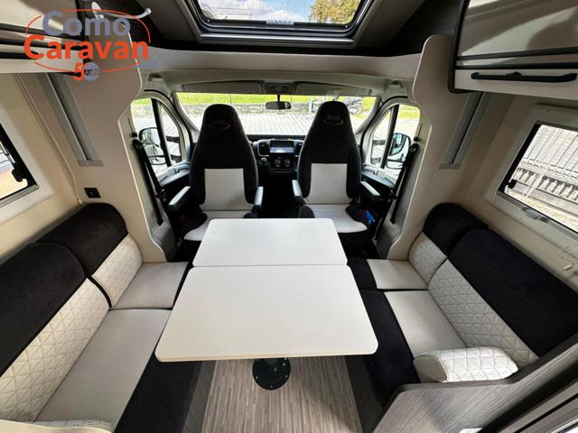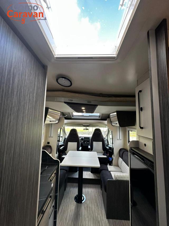 Freno a mano elettrico, Porta ingresso cellula XL 2 punti di chiusura con finestra e chiusura centralizzata, Pannello solare da 200W con regolatore MPPT, Tetto panoramico, Tende cabina plissettate, Braccio porta TV, Coprisedili cabina